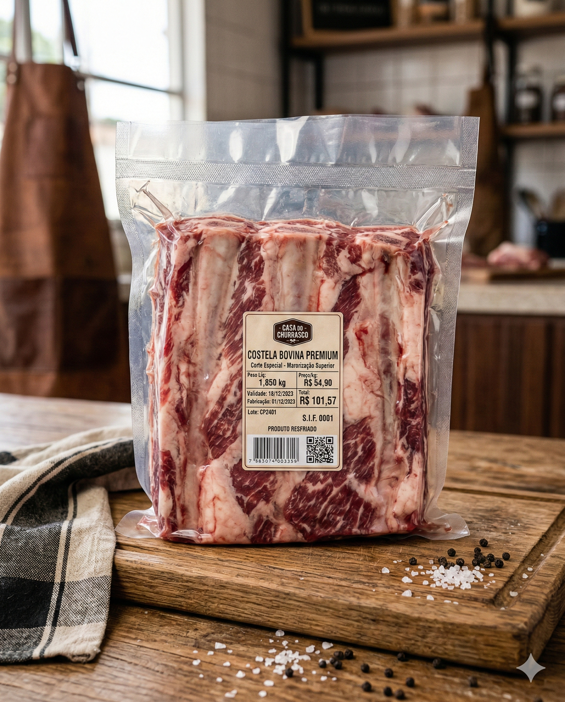 Material impermeável, resistente a umidade e variações de temperatura. Ideal para produtos refrigerados e congelados.